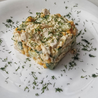 Салат куриная грудка,кукуруза,сыр, огурец - отличный вариант быстрого, простого и очень вкусного салатика!