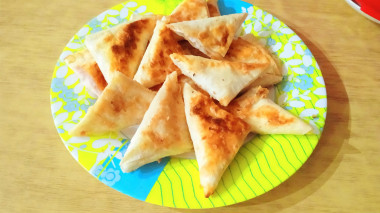 Готовим яичную смесь. В яйца добавить газированную воду, соль и взбиваем. Окунаем наши «треугольники» и жарим до золотистой корочки с обеих сторон, на маленьком огне, сковороду предварительно полить растительным маслом. Приятного аппетита!