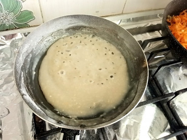 Отдельно на сухой горячей сковороде обжарьте муку до легкого кремового цвета.
