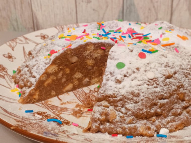 Приготовив торт Муравейник с орехами без выпечки, мне удалось утилизировать всю крошку от бисквитов, которая оставалась после выпечки и хранилась в морозилке, и даже молотый арахис. Её было достаточно для половины порции торта, печенье не понадобилось вообще. Кроме арахисовой крошки добавила также миндаль, кешью и грецкие орехи. Я не взбивала отдельно крем (потому что торопилась), а смешала всё сразу - крошку, масло, какао, затем добавила сгущенку и измельченные орехи. Чтобы придать тортику красивую форму, смазала салатницу сливочным маслом и утрамбовала туда получившееся "тесто". После застывания в холодильнике прошлась по бокам торта острым ножом и перевернула на плоскую тарелку. Очень здорово получилось - сытный шоколадно-ореховый десерт! Спасибо за идею!
