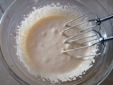 Отдельно миксером взбейте белки с солью в густую устойчивую пену.