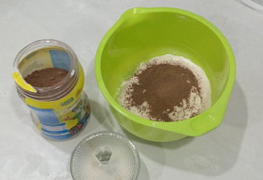 Всегда начинаю с сухих ингредиентов, как в рецепте. Сахар беру всего 1 ст.л., так как какао у нас сладкое, да и ребенок добавляет какао на ложку больше для насыщенности. Молоко, как и советовали в отзывах, всегда немного увеличиваю. Пробовала вариант на перемолотых овсяных хлопьях – тоже отлично вышло!