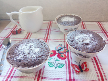 Приготовила кекс в чашке за 5 минут в микроволновке. Готовила по рецепту автора, тоже добавила молоко сверх рецепта( почти 2 столовые ложки), потому что микроволновка "любит" тесто более жидкое, чем для обычной духовки. Этого количества мне хватило на три маленькие пиалы ( объемом 150 мл). Выпекала в микроволновке в течение 4 минут, все сразу.Кексы получились очень вкусные, шоколадные, пористые. В этот раз я их не украшала , просто слегка присыпала сахарной пудрой. Если полить такие кексы помадкой или глазурью , оформить по своему вкусу- они украсят и праздничный стол Отличный рецепт для быстрой и вкусной выпечки! Спасибо за рецепт, katushafin!