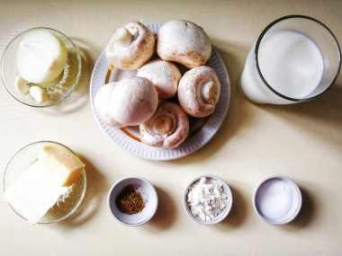 Как сделать соус с грибами и сыром? Очень просто! Начните с подготовки необходимых ингредиентов по списку. Можно использовать замороженные или свежие шампиньоны. Свежие грибы тщательно промойте. Выложите на кухонное полотенце. Важно хорошо обсушить шампиньоны, иначе напитавшись влагой, они станут водянистыми.