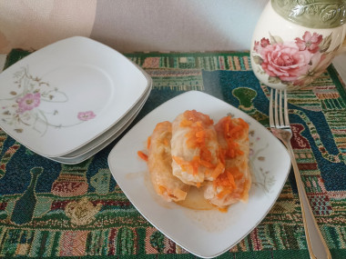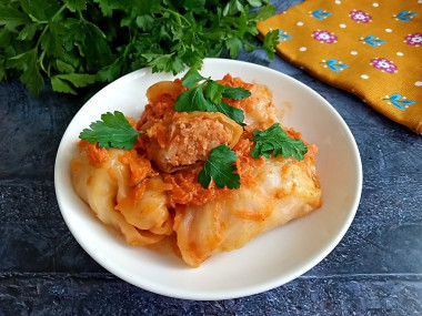Сегодня у меня праздник желудка! Но гвоздь программы - голубцы! Рискнула и сделала по рецепту, а не как обычно, и оказалось так вкусно! Очень сочные, аромат зелени в соусе очень ярко подчёркивает вкус самих голубцов. Мне немного не хватило листов капусты, я зафаршировала картофель и помидор, и это придало блюду не только красивый окрас, но и неповторимый вкус. Спасибо за рецепт, теперь буду только так готовить.