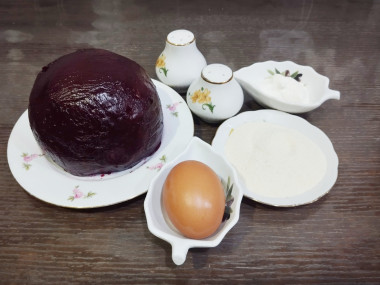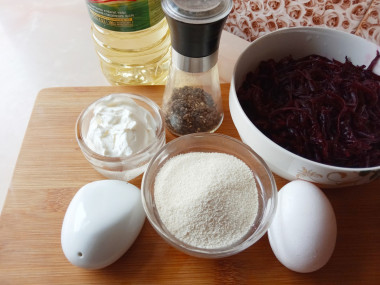 Калорийность продуктов: Свекла, Манка, Сметана, Куриные яйца, Соль, Перец черный молотый, Растительное масло