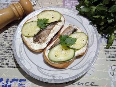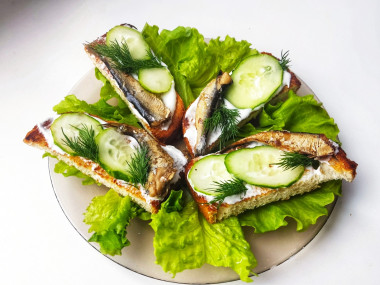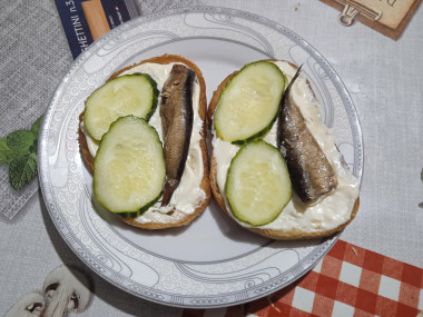 Такой простой, быстрый и очень вкусный бутерброд со шпротами,майонезом и огурцом!