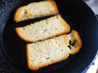 Обжаренный батон станет чуть золотистого цвета. Снимите его на тарелку и остудите.