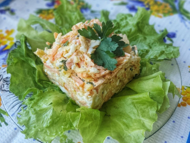Приготовила салат с морковью, сыром,яйцом и чесноком и была удивлена,что из простых ингредиентов получился такой вкусный салатик!
