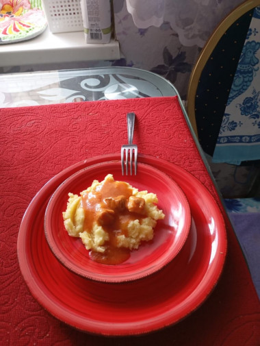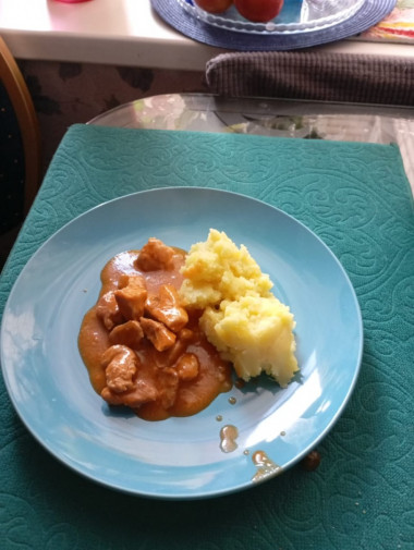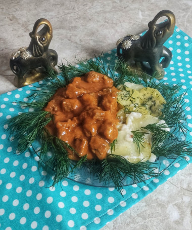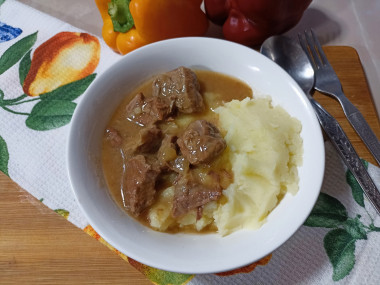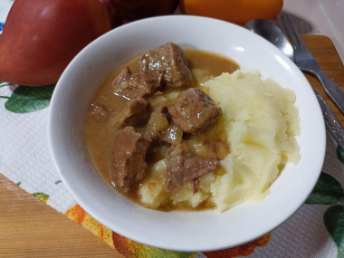 К обеду на второе приготовила гуляш из говядины как в СССР как в советской столовой. Использовала охлаждённую говяжью шею. Готовила по рецепту автора, это традиционный, проверенный способ приготовления, поэтому результат получается превосходный! Аппетитные мясные кусочки в густой ароматной подливке. На гарнир подавала картофельное пюре ( классика жанра!). Спасибо за рецепт, Мария!