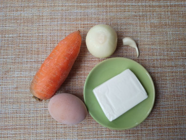 Как сделать паштет-намазку из моркови и плавленого сыра на хлеб? Подготовьте необходимые ингредиенты. Плавленый сыр подойдет любой, в том числе колбасный. Можно взять копченый плавленый сыр. Растительное масло лучше взять без запаха. Количество любого ингредиента можно уменьшить или увеличить в зависимости от того, какой вкус паштета хочется получить.