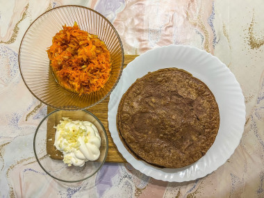 А я добавляю в тортик морковь по-корейски, получается очень вкусно Едим в удовольствие