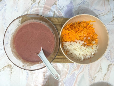 Я тщательно промыла куриную печень и измельчила её в блендере. Затем добавила остальные ингредиенты и замесила тесто, как было указано в рецепте, — получилось тесто, похожее на тесто для оладий. Из него я быстро и легко испекла коржи, которые хорошо прожарились и легко переворачивались. Я жарила их на растительном масле.