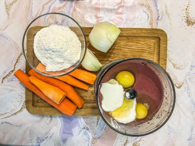 Вкусненький, мягкий торт из куриной печени.Вместо моркови можно тыкву потереть.