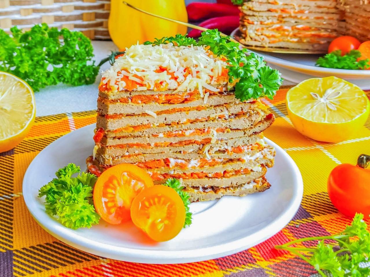 Печеночный торт — это прекрасная закуска для семейного ужина или праздничного стола. Он очень вкусный и нежный. Спасибо за рецепт!