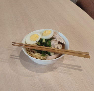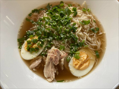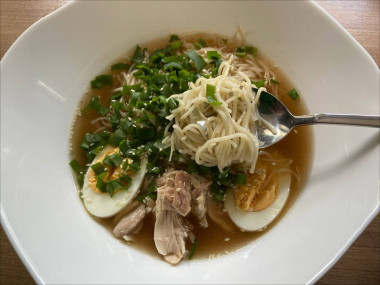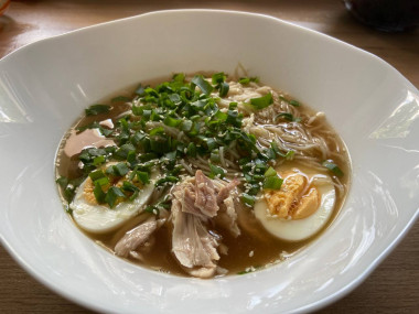 Решил приготовить рамен с курицей по этому рецепту, но вместо кастрюли использовал мультиварку — и все получилось отлично! Рецепт подробно описан и легко повторить, шаги понятные, а ингредиенты доступные. Бульон получился вкусным и ароматным, с гармоничным сочетанием соевого соуса, чеснока и имбиря. Курочка получилась нежной и сочной, а яичная лапша идеально подошла для рамена, придав блюду нужную текстуру.