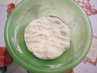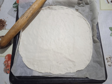 Подошедшее тесто обомните, выложите на стол и приступайте к приготовлению пиццы.