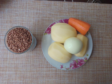 Как сделать гречку с картошкой постную? Подготовьте для этого необходимые ингредиенты. Пропорции гречки и картофеля можете немного изменить на свой вкус. Картофель заранее очистите от кожуры и ополосните в проточной воде от загрязнений.