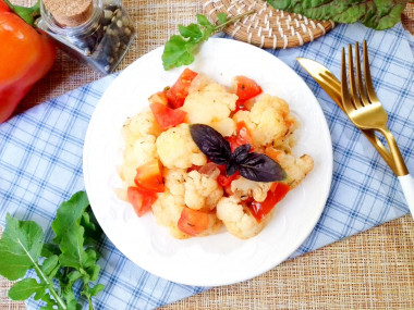 Я считаю этот рецепт ПП так как цветная капуста и помидоры низкокалорийны и очень полезны. В готовом блюде нет лишних жиров, что способствует лучшему усвоению и похудению.
