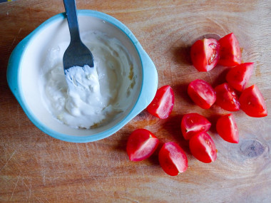 Также в качестве заправки можно использовать не только майонез, но и сметану или натуральный йогурт. Их можно взять по отдельности либо смешать с майонезом в любой пропорции на свой вкус - это снизит калорийность блюда.