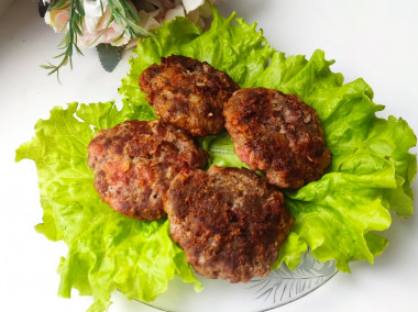 Котлеты можете подать с любым гарниром или сделать из них вкусные домашние бургеры. Я сделала из котлет гамбургеры. На нижнюю часть булочек для бургеров выложите 1-2 листа салата. Сверху уложите говяжью котлету. Полейте котлету кетчупом и горчицей. Сверху распределите кружочки помидоров и маринованного огурца. Накройте второй половиной булочки. Домашние гамбургеры сразу же подайте к столу. Приятного аппетита!