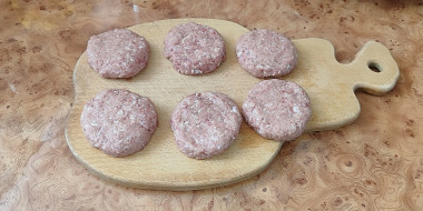 Сформируйте из фарша ровные круглые котлеты. У меня получилось 6 котлет.