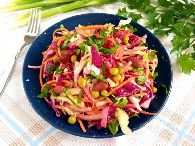 Мне захотелось попробовать сделать салат из краснокочанной капусты. Нашла интересный рецепт с ее участием.
