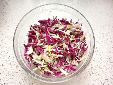 Также поступите с краснокочанной капустой и отправьте в чашу.