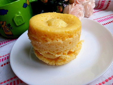 Нам с дочкой захотелось к завтраку чего-нибудь сладенького, но на выпечку уйдет много времени. На этот случай у меня в закладках всегда есть рецепт быстрого кексика. Опыт по приготовлению таких изделий у меня уже имеется, так что все прекрасно получилось. Для кекса в кружке на кефире в микроволновке взяла большую керамическую кружку, у нее толстые стенки, благодаря чему кекс хорошо пропекается и не горит. В начинку ничего не добавляла, сделала как есть в рецепте. Кружка большая, поэтому взяла двойную порцию продуктов. Форму обязательно смазываю растительным маслом, это облегчает извлечение кекса. Запекала две минуты при мощности 750 Втт. Мне показалось, что немного не хватило, добавила еще пол минуты. Получился прекрасно пропеченный кекс! Из кружки вышел легко. После остывания разрезала его на три части, интересно было посмотреть что внутри. А внутри оказался мягкий пористый мякиш, вообще весь кекс получился воздушным. На вкус нам очень понравилось, кекс сладкий, нежный. Его даже можно прослоить сметаной и получится мини тортик) Рецепт удачный, рекомендую.