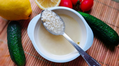 Рис использовала бурый. Мята у меня была только сушеная, её и добавила.