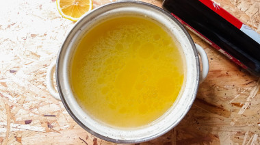 На обед приготовила суп с лимоном куриный. У меня уже был готовый куриный бульон (без кусочков мяса), его и использовала. Бульон со всеми необходимыми продуктами проварила в течение 20 минут. Перца чили положила совсем немного и вынула его, как только бульон стал немного острым.
