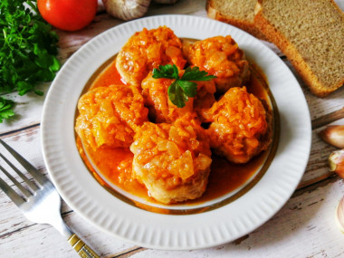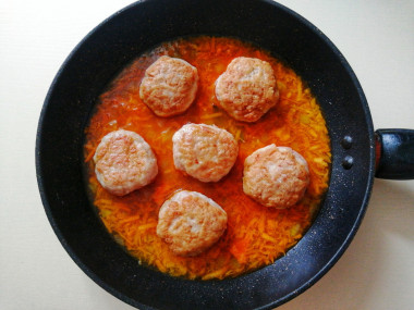 Выложите биточки в томатную подливку. Тушите на небольшом огне под крышкой 25-30 минут до готовности биточков. Точное время тушения зависит от вашей техники, размера биточков и личных предпочтений. При необходимости добавьте еще горячей воды.