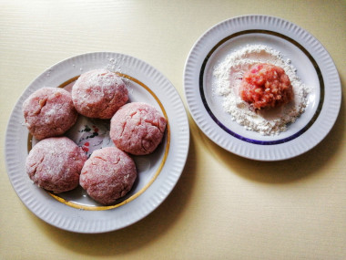 Из фарша сформуйте 10-12 ровных круглых биточков и запанируйте со всех сторон в муке и стряхните излишки.