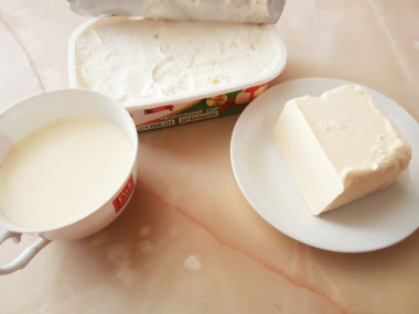 Как сделать крем из творожного сыра и сгущенки для торта? Подготовьте для этого необходимые ингредиенты. Сливочное масло заранее достаньте из холодильника и оставьте при комнатной температуре, чтобы оно стало мягкое. Чтобы процесс шёл быстрее, нарежьте масло на кусочки. Творожный сыр для крема должен быть жирностью не менее 60 %. Сгущенное молоко выбирайте проверенного производителя. Во вкусе не должно быть ничего лишнего.