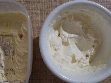 Творожная и масляная масса, два главных компонента крема, готовы.