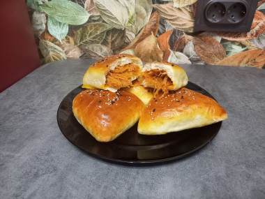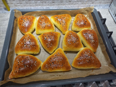 Тесто получилось пышное. Одно удовольствие работать с таким. Делала с капустой и яйцом.