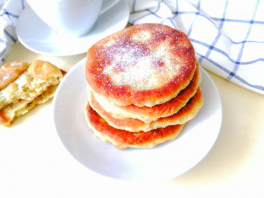Обжаривала пышки на растительном масле по 2-3 минуты с каждой стороны под крышкой. Следила за готовностью пышек по образовывавшейся румяной корочке.