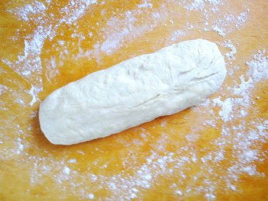 Сформировав из теста небольшой батончик, разрезала его на несколько частей, далее сделала из них лепешки.