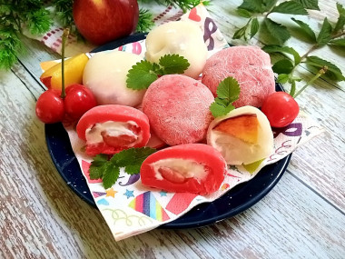 Яркий и оригинальный японский десерт, покоривший весь мир! Моти — популярное в последнее время пирожное из рисовой муки, которое совсем не сложно приготовить в домашних условиях. В этом рецепте оно делается из самой обычной муки, которая продается в магазинах. Для начинки берется ягодное ассорти.