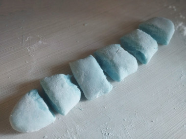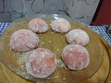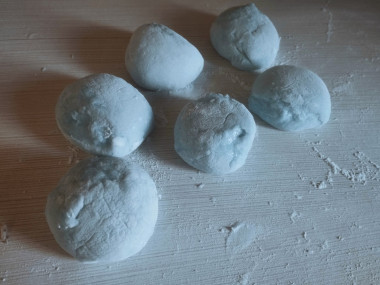 Слепите моти, придав ему круглую форму, обваляйте в крахмале.