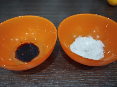 В глубокой миске смешайте соль, сахар и молотый кориандр. Сахара по вкусу можно взять чуть меньше, чем указано в рецепте. В отдельной глубокой чашечке смешайте оливковое масло, соевый соус и сок половины лимона.