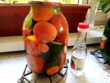 Рецепт мне очень понравился, приготовила пару банок. Думаю, мой рецепт вам тоже понравится это яркое, красочное овощное изобилие в одной банке! Заготовка «сад-огород» многим известна как овощное ассорти.