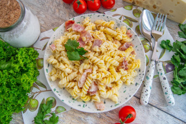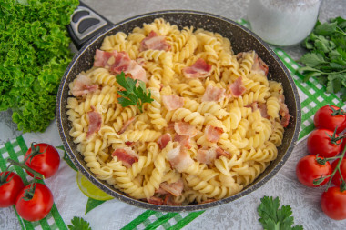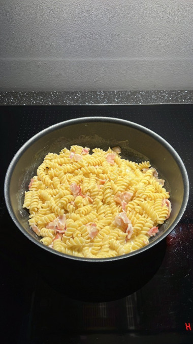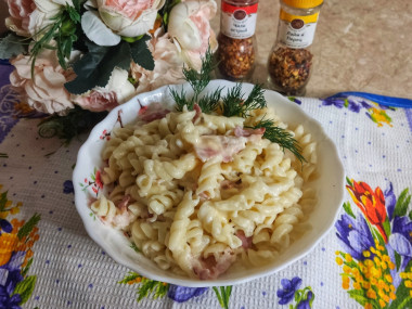 Отличное блюдо приготовила благодаря рецепту автора katushafin: макароны с беконом,сыром и сливками. Макароны отварила, бекон порезала небольшими кусочками,сыр натерла на мелкой тёрке. Бекон обжарила на сковороде,добавила сливки,сыр и довела до кипения. Затем добавила макароны,перемешала.