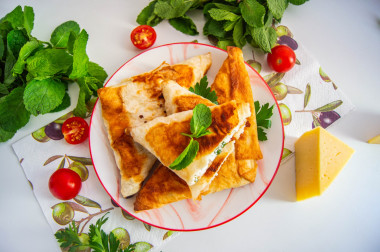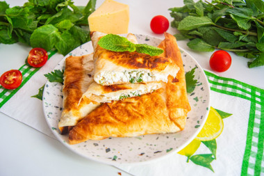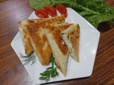 На завтрак приготовила хачапури из лаваша с творогом на сковороде. Творог взяла мягкий, домашний, натерла твердый сыр, нарезала зелень ( укроп и петрушку), добавила по вкусу соль и черный перец, растительное масло. Начинку хорошо перемешала и завернула треугольники из полосок лаваша. Обжарила на сковороде с растительным маслом до зарумянивания. Получилось супер вкусно!!! Поджаренный хрустящий лаваш, а внутри - сочная ароматная начинка с мягким творогом и расплавившимся сыром. Спасибо за рецепт, Мария!