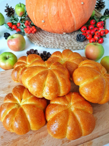 С наступлением осени захотелось приготовить что-то из тыквы, и мой выбор пал на эти замечательные пирожки с тыквой и яблоком. Приготовила я их в виде тыковок, мне показалось, что это будет необычная подача сезонного овоща. Пирожки получились очень мягкими, воздушными и оочень вкусными!От себя я добавила немного куркумы в тесто для цвета. Вкус у пирожков очень интересный за счёт сладких яблочек, пряной тыквы и кисленького лимона.