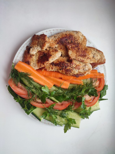Готовое филе индейки выложите на тарелку, дополните свежими овощами и подавайте к столу в горячем виде. Приятного аппетита!
