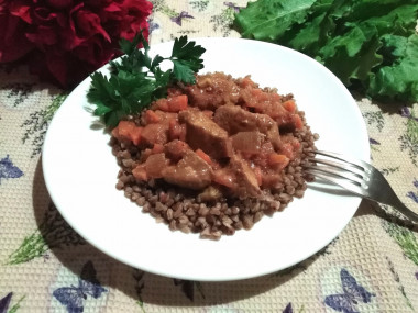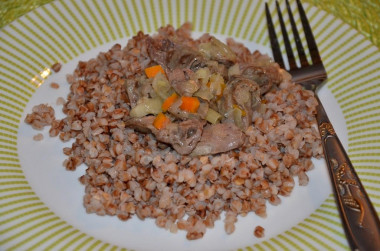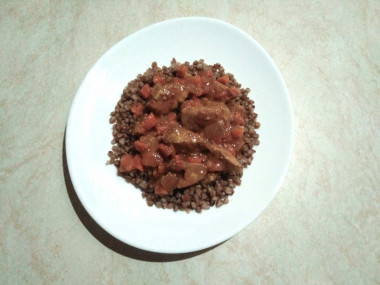 Тоже люблю гречку с подливом, только в этот раз использовала не мясо, а куриные потрошка с грибами, получилось быстро и вкусно