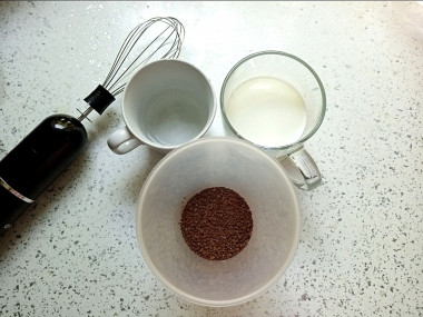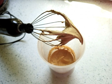 В емкости смешайте молотый кофе, сахар и кипяток и взбейте миксером до получения густой устойчивой пены. Если нет миксера, можете воспользоваться погружным или стационарным блендером. Если вообще никакой техники нет, можно взбить все обычным венчиком или вилкой. Однако скорее всего такой пышной, воздушной и плотной пены вы не получите. Но будет тоже вкусно.