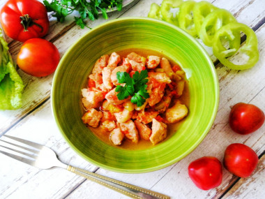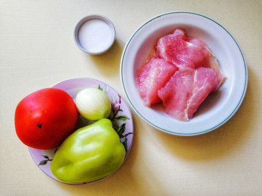 Как сделать тушеное мясо с перцем болгарским и помидорами? Подготовьте для этого необходимые ингредиенты. Для приготовления можно взять любое мясо - свинину, говядину, курицу или телятину. Я буду готовить из свинины. Выбирайте мясо без костей. Отлично подойдет шея, окорок или вырезка. Вместо помидоров в собственном соку можно взять свежие или добавить и те, и другие.