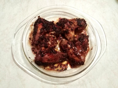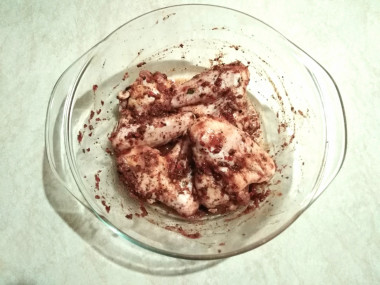 В получившимся маринаде замачиваем куриные крылышки. На пропитку маринадным соком можно выделить как полчаса - для самых торопливых, так и в несколько раз больше времени. Чем дольше, тем нежнее и лучше на вкус потом будет ваш шашлычок.